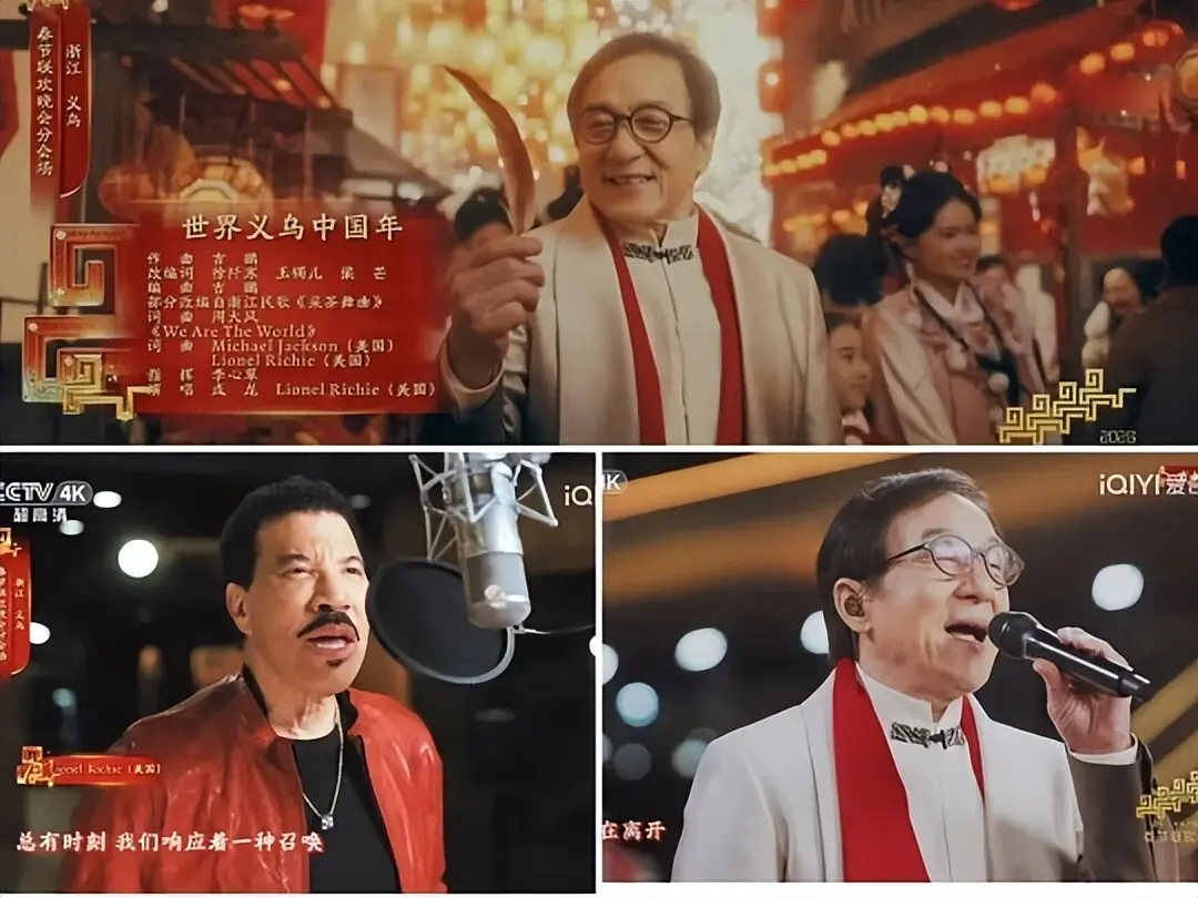 浙江义乌分会场请来了成龙和Lionel Richie,两东谈主齐唱《天下义乌中国年》。