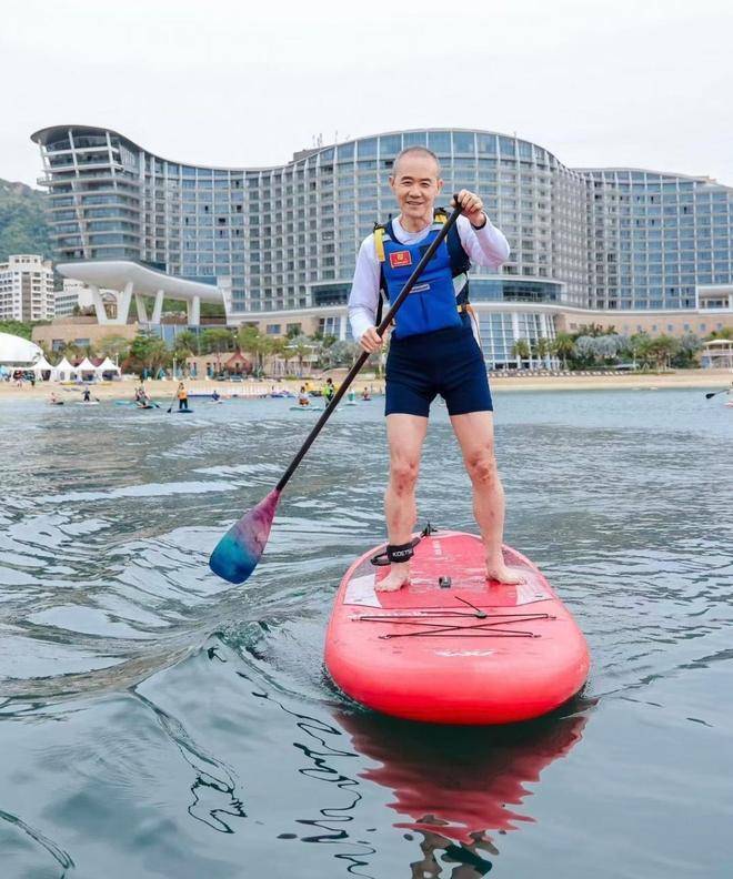 相片里的王石哪有半分“出事”的形势?他衣着蓝色长袖泳衣,外搭橙色浮水衣开云sports,腰间系着玄色腰带,双手叉腰站在风帆船面上,死后是水光潋滟的深圳湾。诚然头发和髯毛已染上白霜,但晒成古铜色的皮肤紧致有色泽,手臂肌肉线条显明可见。有眼尖的网友发现,他脚踩专科风帆鞋,头戴防风头巾,连脸上的防晒泥皆涂得一点不苟,活脱脱一个专科通顺员的气派。更让东谈主惊诧的是,这位年过七旬的老东谈主的确还在沙滩上玩起了“彩绘”——额头和面颊涂着黄白相间的神采,对着镜头咧嘴笑的形势,频年青东谈主还显活力。
