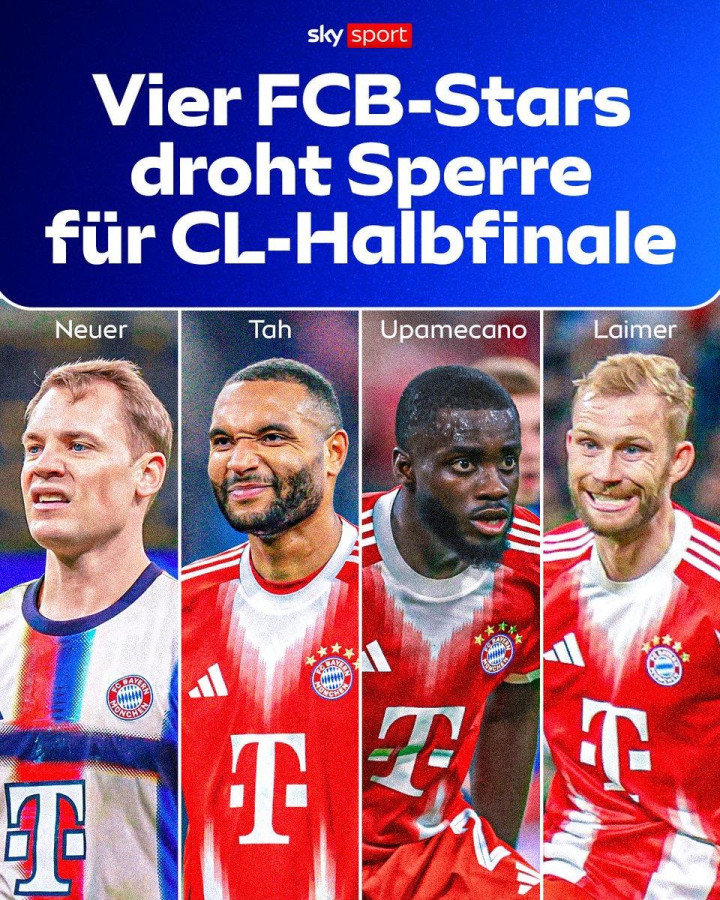 开云sports 拜仁四将若再得一黄, 便会无缘可能到来的欧冠半决赛首回合