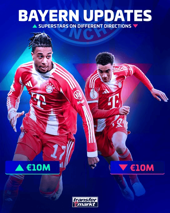 开云体育官方网站 拜仁身价: 奥利塞/帕夫洛维奇涨1000万, 穆西亚拉跌1000万