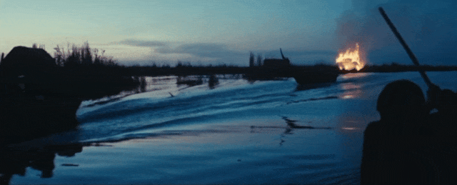 电影里最好意思的一幕是在薄暮工夫,两个孩子划着独木舟穿行在池沼地的水谈中,天外是消除的海绿色,水面反照着他们的影子。迢遥,一栋竖直立在消释,火光轻飘却赫然。
