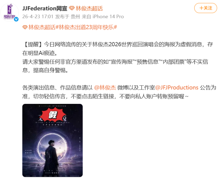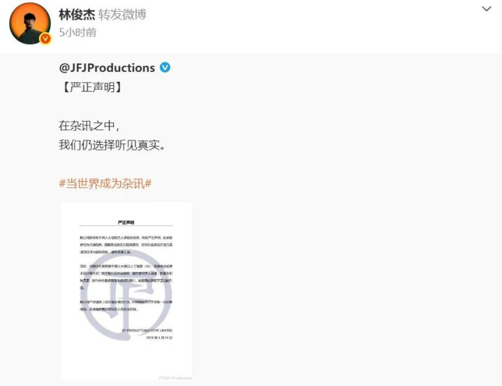 开云sports 林俊杰方发布严正声明辟谣网传演唱会