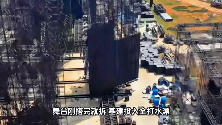 这事发生在云南抚仙湖,本来是花花筹画两年的火星乐土,2015一连开4天,为了这场秀团队径直拿下湖边3块地,光地价就8到15亿。舞台更是夸张,72米高颠倒于24层楼,9000平巨幕,2000吨钢材,300米延长舞台,妥妥的户外顶级工程。成果官方一句不能抗力全没了。
