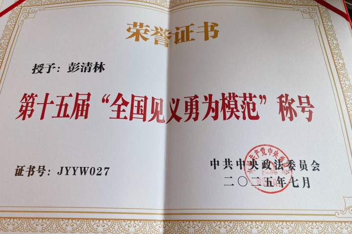 这并不是彭清林第一次赢得世界赏赐。2025年夏天,第十五届世界济弱扶倾英雄轨范赏赐大会上,彭清林荣获“世界济弱扶倾轨范”称呼。