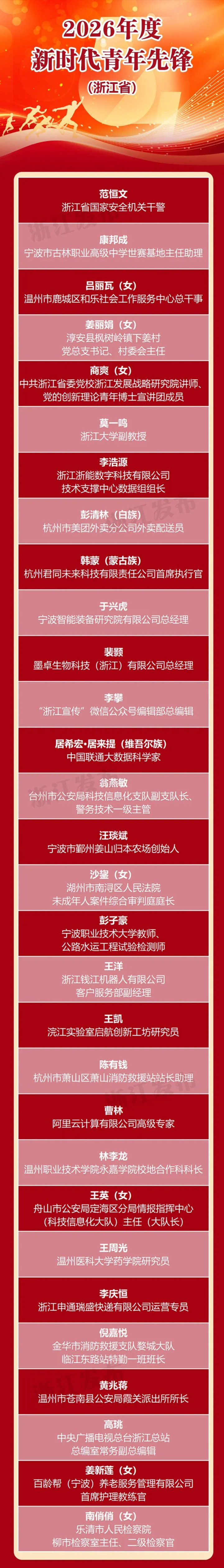 杭州市好意思团外卖分公司外卖配送员彭清林和浙江申通瑞盛快递有限公司运营专员李庆恒被授予新时间后生前卫称呼。