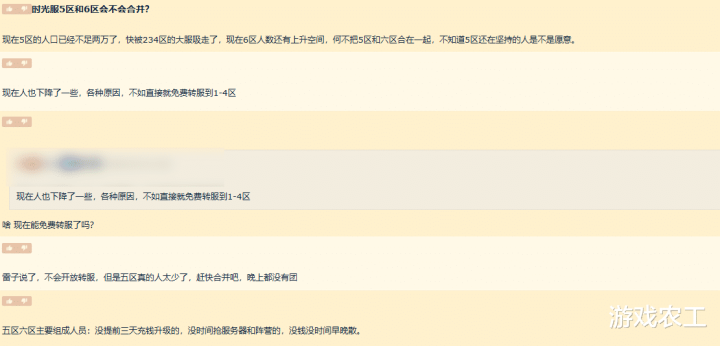 而这两天有玩家在论坛中磋磨一个问题,即是时光服5区和6区会不会兼并。该玩家给出的原因在于,当前这两个区全体东说念主数还是减少了好多,不少5区和6区的玩家其实还是回流到了之前的1、2、3区中。毕竟很久之前,新区的玩家无非是因为前几个区天天列队,是以被动分流到了5区和6区。而跟着游戏玩门户量的减少,不少玩家就聘用了回流。