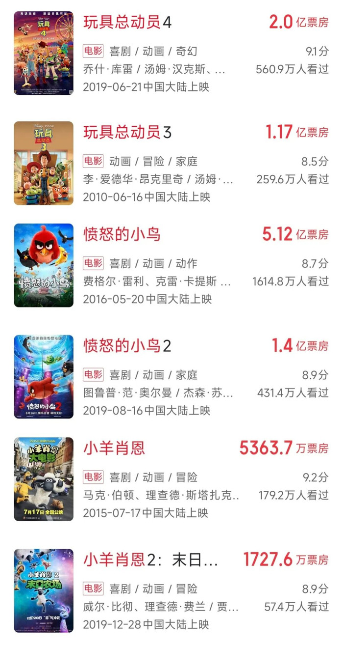 事实上,除了客岁狂揽45.94亿元的《荒诞动物城2》外,近些年好莱坞动画在中国商场的票房敕令力已大不如前。