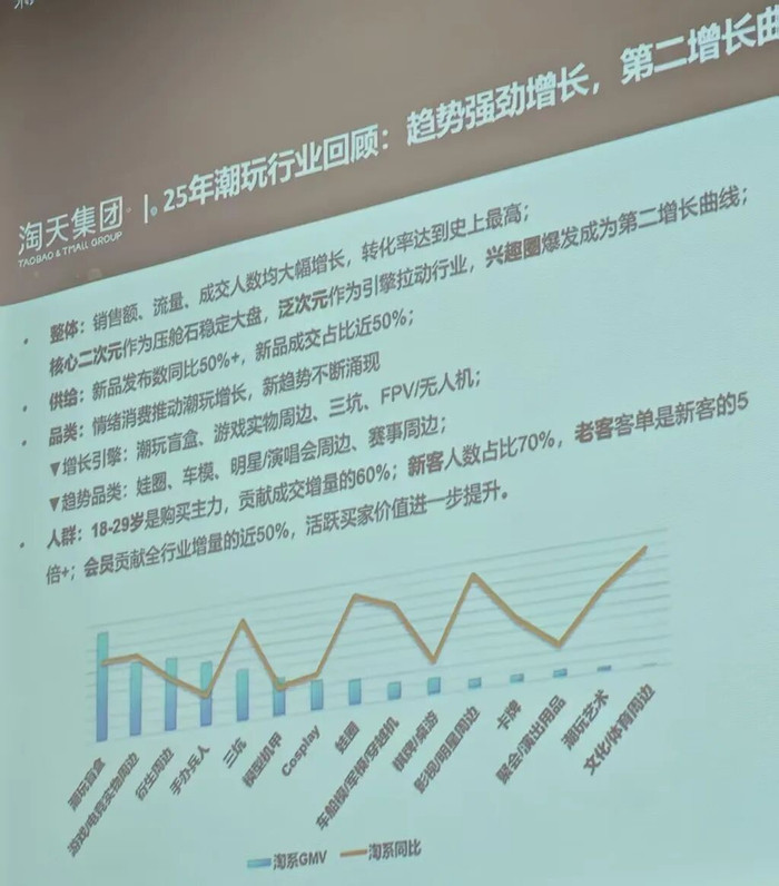 真东谈主明星IP是另一个值得关注的类型。淘天潮水玩物行业司理摧城在雷报客岁年末举办的[问谈2025年终盛典]上的主题演讲中便称影视/明星附进是“本年(2025年)最大的亮点”和2026年的“重心赛谈”。在4月7日举办的2026淘天玩物潮玩行业峰会暨2025年度受奖庆典上,摧城又再度强调“明星/演唱会附进”将是本年的趋势品类之一,并瞻望将在翌日成为统共这个词泛潮玩行业的要津增长引擎。