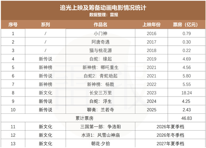 其中,看成现时国产动画电影“御三家”之一,追光动画的两部新作无疑备受期待。其新文化系列首部作品《长安三万里》曾在2023年斩获18.24亿元票房佳绩。不外,客岁推出的《聊斋:兰若寺》票房进展欠佳,2.43亿元的成绩,致使创下追光动画自2019年以来的票房新低。