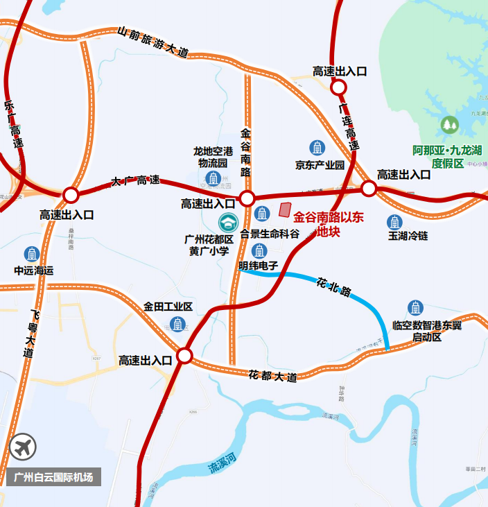 位于花齐东部临空数智港,金谷南路以东,大广高速以南,距白云海外机场约8公里。地块周边高、快速路网阐扬,可浮浅连通白云海外机场。当今地块周边已汇注较多物流园区、产业园区,交通区位及产业发展基础精致。