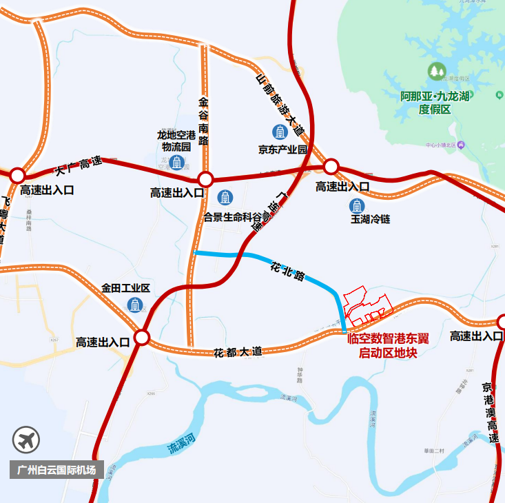 位于花齐东部临空数智港,山前旅游通衢以南,广连高速以东。紧邻高速进出口,物流交通浮浅;周边主要为近况产业园区,基础服务法子较为完善,区位交通条目较为优胜。距离白云机场11公里。