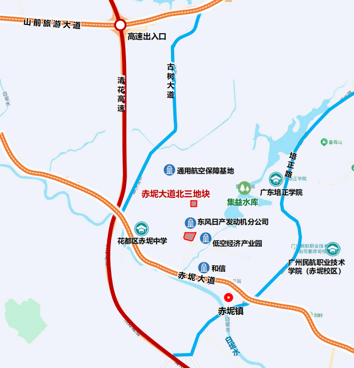 位于花齐西部智能新动力汽车城,赤坭通衢以北,古树通衢以东,距赤坭镇中心镇区约1公里。地块周边已汇注汽车新式发动机、低空经济产业园神色,产业发展基础精致。