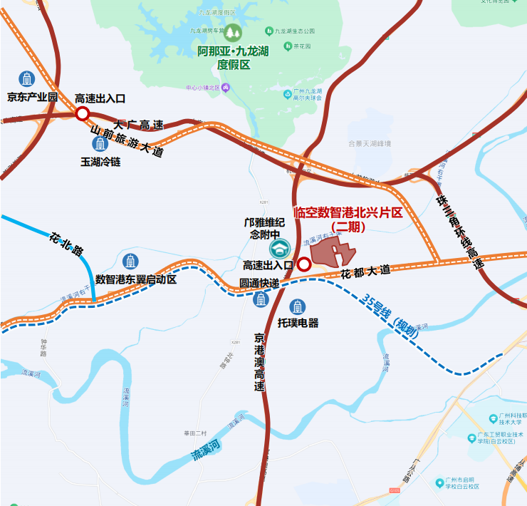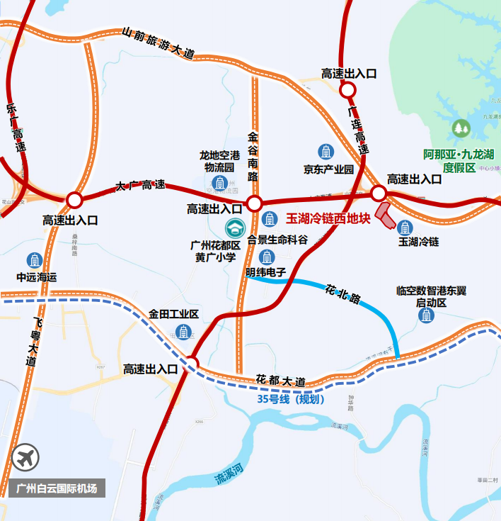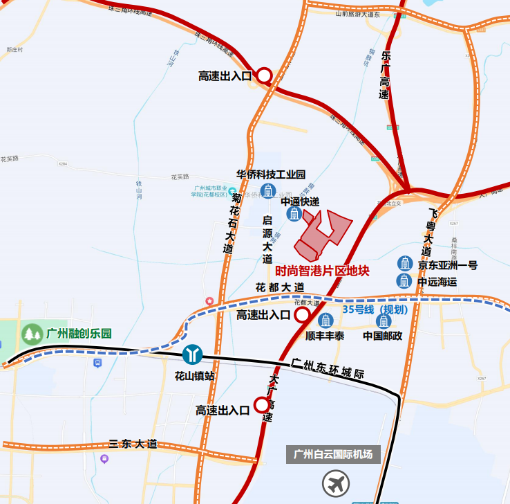 交通出行便利:南临广州东环城际,探讨地铁35号线,东临大广高速,南临花齐通衢。