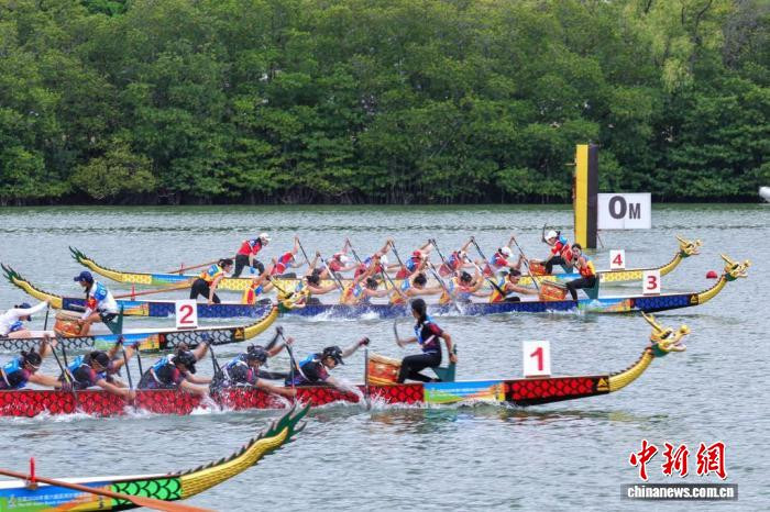 4月24日,第六届亚洲沙滩畅通会龙舟女子100米直说念赛决赛在海南三亚举行。图为决赛戎行在比赛中。中新网记者骆云飞摄