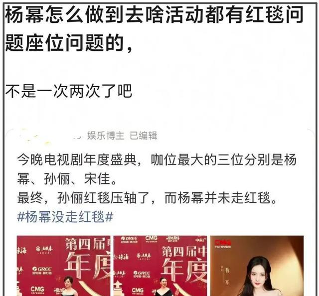 杨幂能因为座位挨骂,也有女星因为座位坐得太靠后,收货了一波选藏。