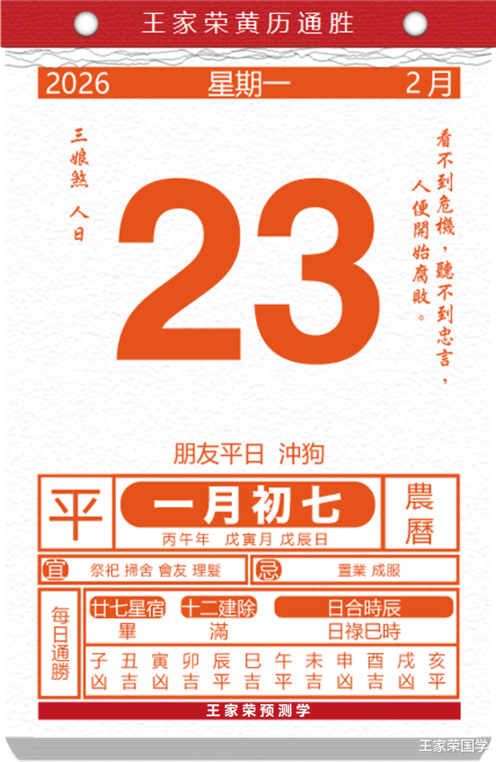 老通书看日子生肖运势查询(2026年2月23日)